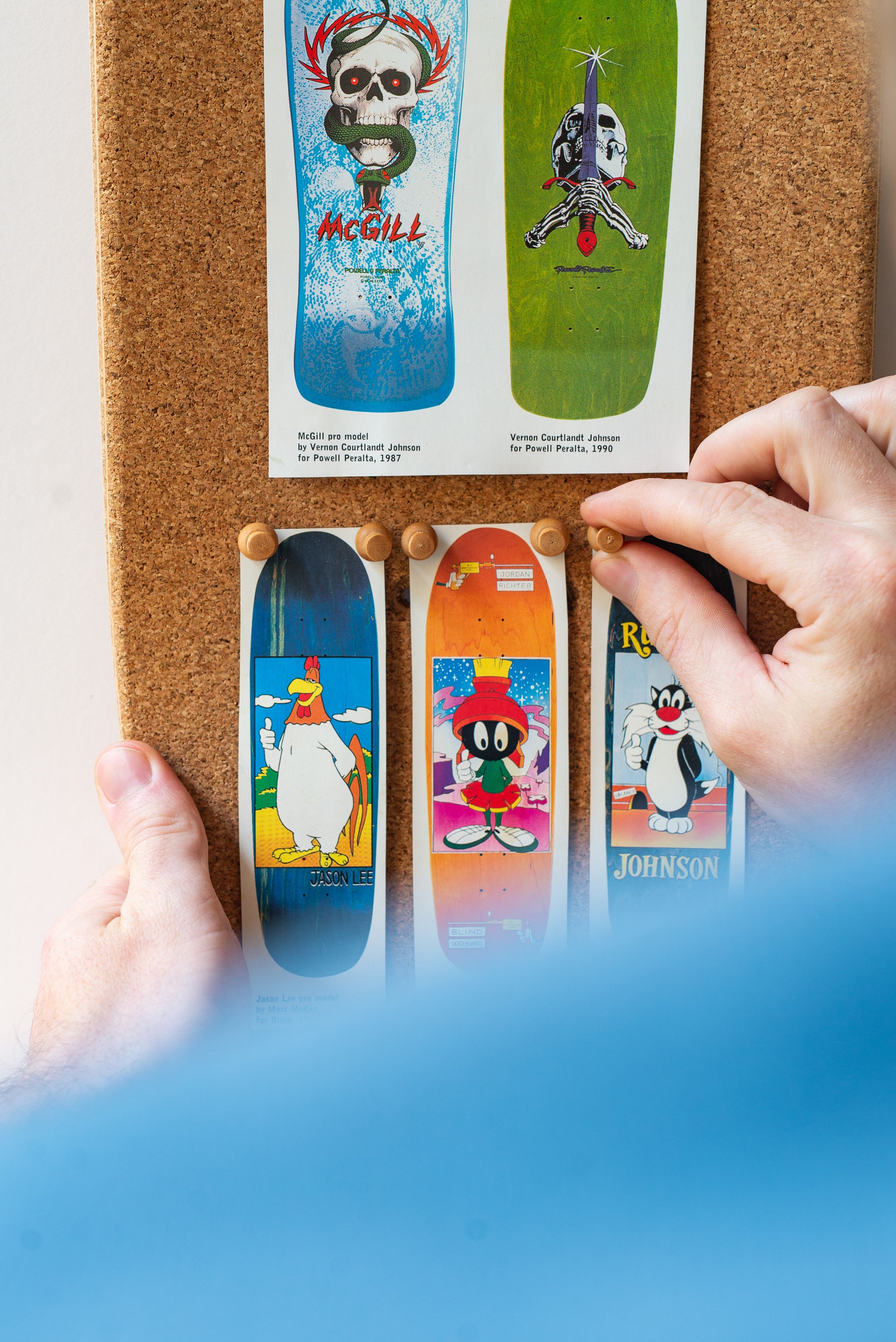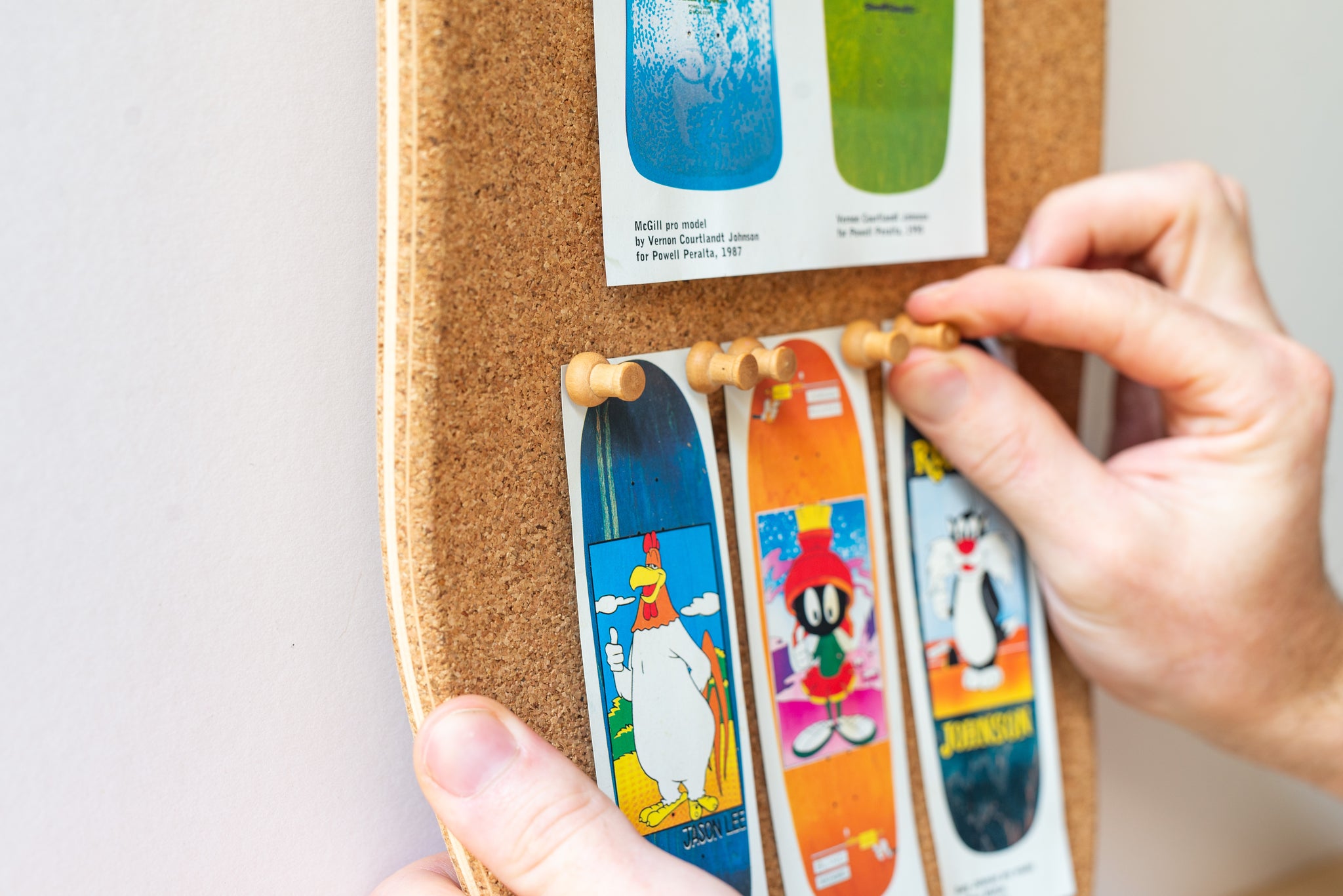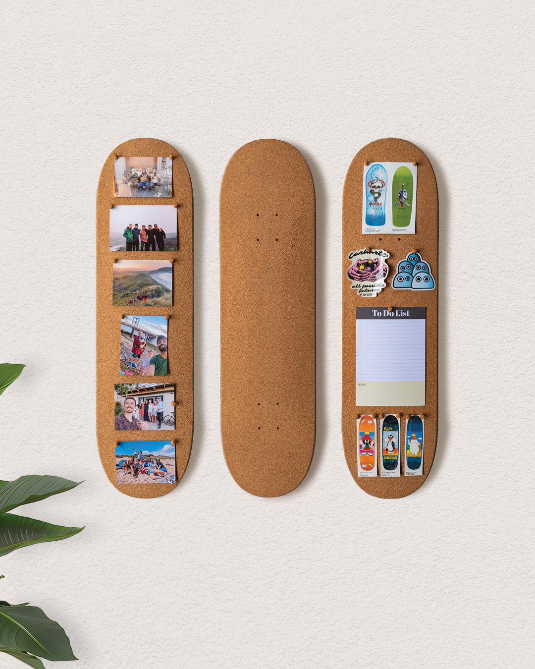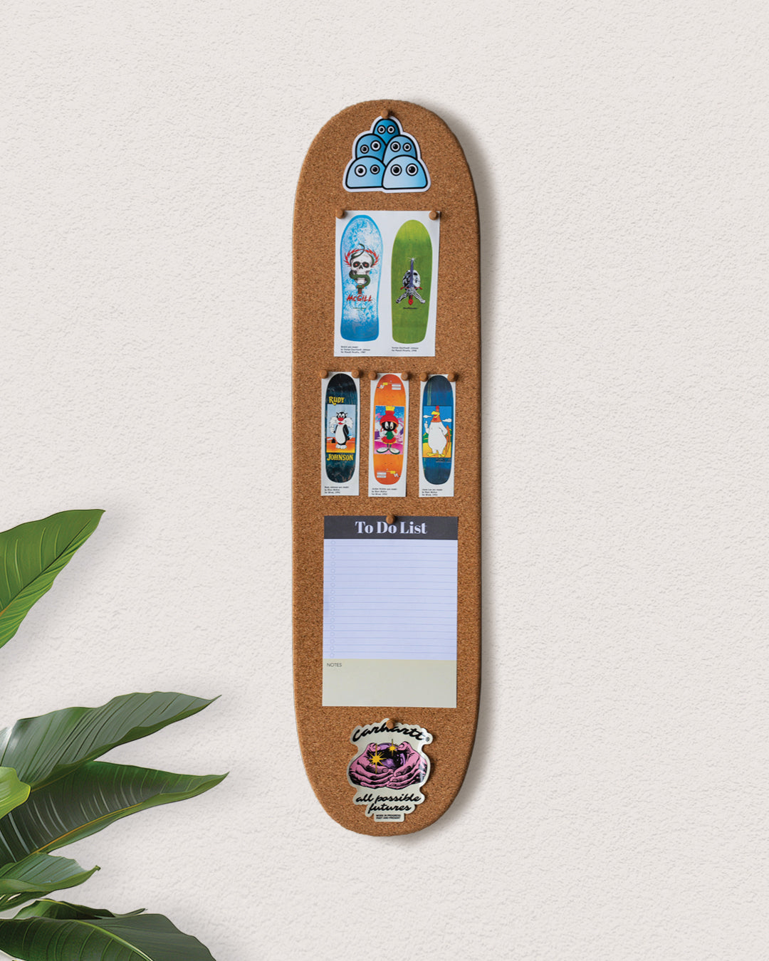 NOT A SKATEBOARD uses spare maple from the manufacture of our decks and cruisers along with sheets of cork. The result is a super sustainable deck designed specifically for your wall.