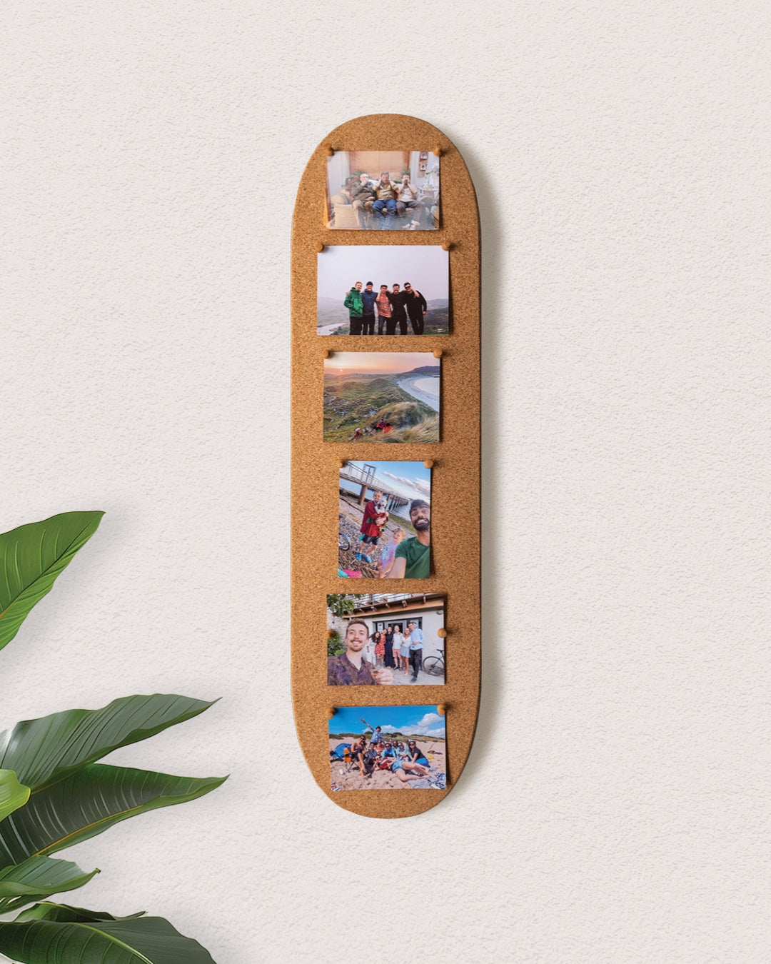 Street deck popsicle notice board. Pressed and shaped just like our traditional skateboards and cruisers. NOT A SKATEBOARD comprises of layers of maple we couldn't use in decks and cork sheets. Hang it either way round and pin up your favourite photos, art or to do lists. Normal notice boards are boring.